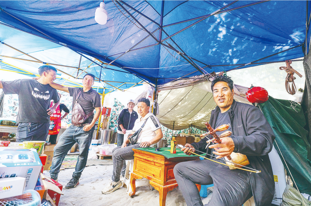 和益西有相同想法的群眾不在少數(shù),每年藏歷八月初,巴塘群眾都會(huì)齊聚在夏邛鎮(zhèn)龍王塘,用各式各樣的帳篷裝飾草地,傳統(tǒng)非遺藏戲和歡快弦子點(diǎn)燃了節(jié)日氛圍,燒烤攤、小賣(mài)鋪、藏餐館俘獲四方游人味蕾,“央勒節(jié)”讓幸福在此刻具象化。