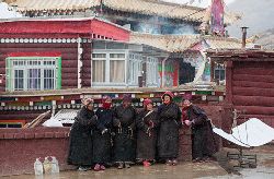 冬季的色達(dá),常常被皚皚白雪覆蓋,民居、帳篷、寺院、經(jīng)幡、牦牛點(diǎn)綴期間,美麗迷人。