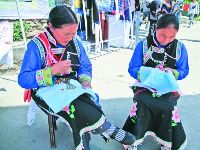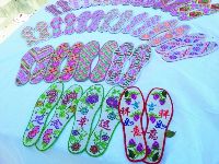 瀘定縣嵐安刺繡是純手工特色工藝品。1300多年前,羌族工藝就流傳于嵐安鄉(xiāng),刺繡工藝便是其中一種。嵐安刺繡在操作上有平繡、牽繡 、挑花和納花;工藝分圖譜和剪紙,圖譜是繡大型的如圍裙、小兒抱裙、背心等,先勾畫圖譜,按圖配色選線再繡;剪紙是用蠶繭殼剪成圖形,再固定在所繡之物上,配色選線繡,所繡之物多為涉獵帽子、鞋子、婦女的針插子、扇插子等。主要繡字、花、草、樹、鳥、獸、昆蟲、山水等。全鄉(xiāng)有800余農(nóng)戶,每戶都有一兩人會(huì)從事手工刺繡。刺繡產(chǎn)品可作贈(zèng)送品、商品、旅游紀(jì)念品及各種裝飾品。(徐慧 文/圖)