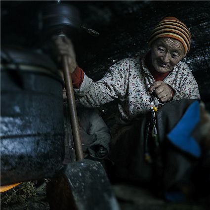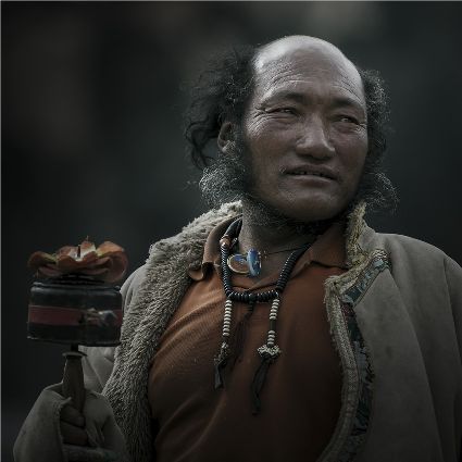每當(dāng)我手持相機(jī)時(shí),對(duì)他們始終懷有一種敬畏,我捕捉到他們眼神里流露出虔誠(chéng)。看著經(jīng)筒上“甲多”的飛轉(zhuǎn),我陶醉了,醉在那轉(zhuǎn)經(jīng)筒的旋轉(zhuǎn)舞動(dòng),醉在那轉(zhuǎn)經(jīng)筒傳誦的故事,醉在那一張張手持轉(zhuǎn)經(jīng)筒的面孔,還有,還有因祈禱音符助推而從未停止的轉(zhuǎn)經(jīng)筒……
