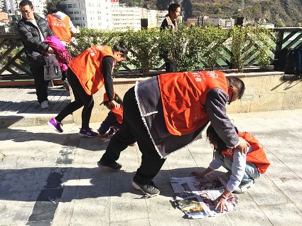 在瀘定橋上,小記者們向游客講述當(dāng)年“紅軍飛奪瀘定橋”的英雄壯舉。在瀘定橋河西長廊,帶隊老師組織小記者和家長們進行了“向目標(biāo)前進”的親子互動游戲,游戲?qū)议L和孩子的默契程度進行了考驗,鍛煉了他們的智力和體力。在瀘定紅軍紀(jì)念館廣場上,小記者們按照帶隊老師的要求進行拼接游戲,完成“小小紅軍支援前線”,獲勝的小組獲得了獎品。游戲結(jié)束后,小記者們在講解人員的帶領(lǐng)下參觀了瀘定紅軍紀(jì)念館,了解了許多相關(guān)的歷史知識。同時,小記者們以組為單位開展了“講紅色故事”活動,講解內(nèi)容涉及瀘定橋的修建、瀘定橋勇士英勇犧牲的故事等,讓小記者進一步了解到了瀘定縣的紅色歷史文化。