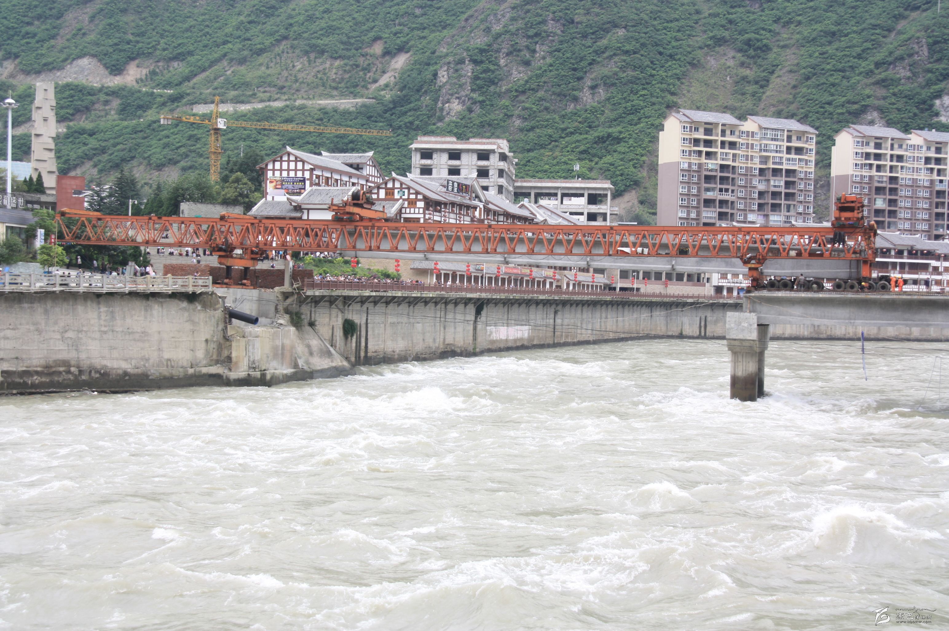 2015年9月中旬,葛洲壩集團(tuán)瀘定項目部,順利、安全完成“城南大橋”拆舊建新第3跨T型梁的架通,標(biāo)志新“城南大橋”主體修建成型。遠(yuǎn)觀新橋氣派壯觀。目前大橋施工方正加緊工期,對新橋第三跨的橋面混凝土澆鋪硬化,接著是橋欄的安裝。施工方承諾:2015年10月底新橋先行通人,保證年底通車。屆時,一座引用原橋名,在原橋址上新建,屬特大預(yù)應(yīng)力混凝土梁式(T型梁)主跨3跨,全長170米,橋面寬11.5米,其中2×2米人行道+7.5米機(jī)動車道,嶄新壯觀“城南大橋”同舊“城南大橋”一樣得到過橋人的敬重和欣慰。2013年12月被拆除的舊“城南大橋”由此從人們的視野中消失了。但橋名被保留下來了,舊橋的容貌被印在攝影愛好者的照片里了。