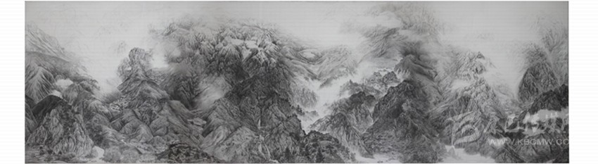 在我剛開始創(chuàng)作“茶馬古道”之時,有人問我:“給誰畫的?拿來賣的嗎?”我連連搖頭,問者滿臉疑惑。也有同行對我創(chuàng)作大幅素描山水畫有些不解。其實我沒那么奇葩,只是每個人想要的不同而已。我花費大量的財力和精力去采風(fēng)、寫生并潛心創(chuàng)作《茶馬古道》,是因為我長在“茶馬古道”,是“茶馬古道”養(yǎng)育了我,是我的“責(zé)任感”使然;為什么還要畫一幅難以參加常規(guī)展覽尺寸(966×266cm)的作品呢?是因為“茶馬古道”東線艱險而又壯美的河山及所包涵的故事,用較小尺幅難以表達(dá)盡興。再則在藏族唐卡布上用鉛筆勾勒和皴擦出中國山水畫的意境,是一種新的嘗試,也是中西文化的再一次交匯。