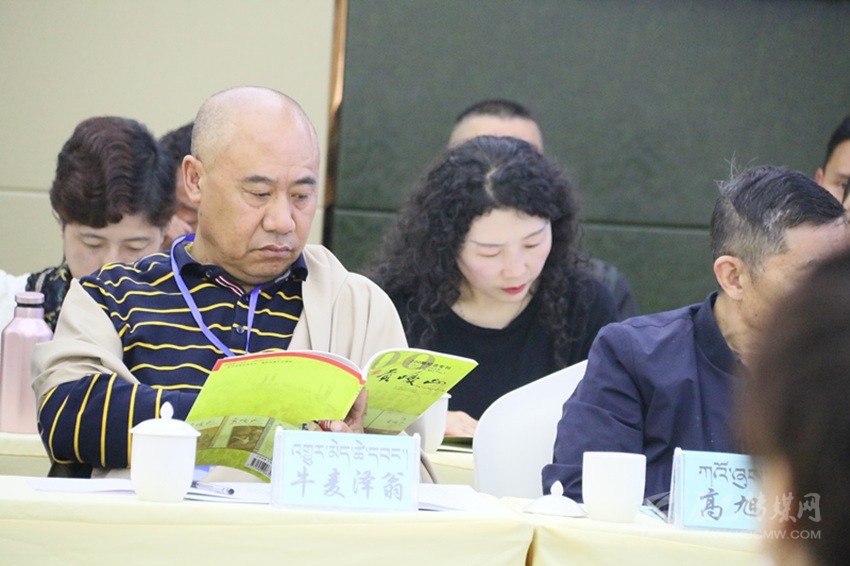 會議室正中的電子屏上,“貢嘎山期刊交流暨2019年藏漢文作家培訓(xùn)會”白色字體赫然入目。室內(nèi)最靠后的桌上,《貢嘎山》200期紀(jì)念??ⅰ敦暩律健返?99期等藏漢文讀物有序擺放,吸引了不少“粉絲”當(dāng)場品讀。