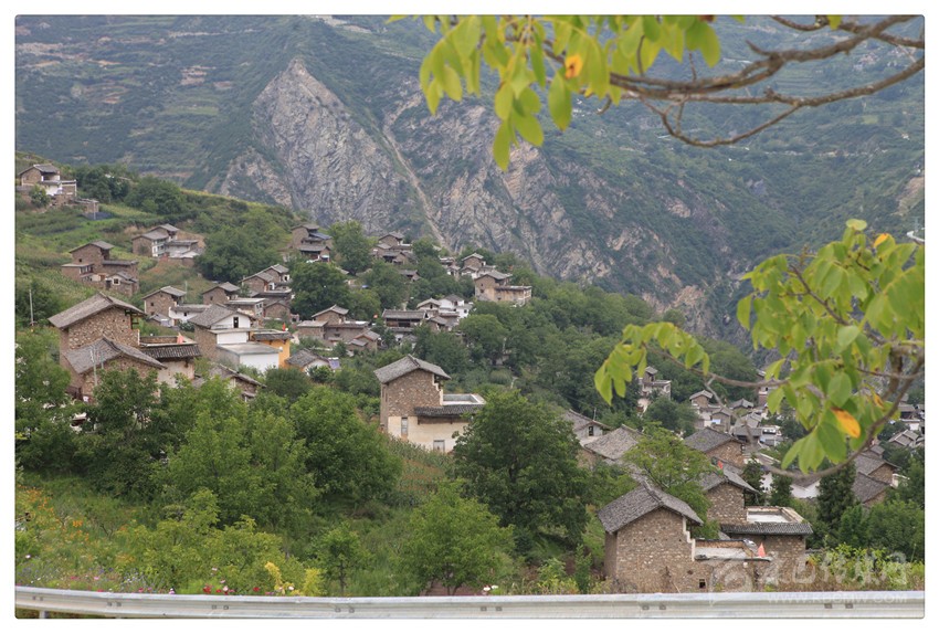 至此,似乎明了:在大渡河的東岸,在南北向布列的橫斷山脈(群)的夾金山系里,照常分布著眾多山的凹槽(山溝)——或深或淺,或?qū)捇蛘较虿欢?;而麥崩鄉(xiāng)所轄的村莊,幾乎都位于山溝兩側(cè)比較平緩的山坡臺(tái)地上。比如,昌昌村與對(duì)面山上的景點(diǎn)之間,就隔著一條大溝;昌昌村與下火地村之間,也隔著一條大溝;下火地村與景點(diǎn)所在的那座山,也隔著一條大溝了。