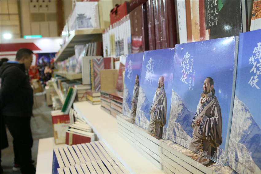 在分享會(huì)舞臺(tái)的一側(cè),靜置著書籍《雪線信使——“時(shí)代楷?!逼涿蓝嗉贩糯蠛蟮姆饷妗7饷嫔?,其美多吉、藍(lán)天與雪山相得益彰,構(gòu)成了一幅獨(dú)具特色的畫面。
