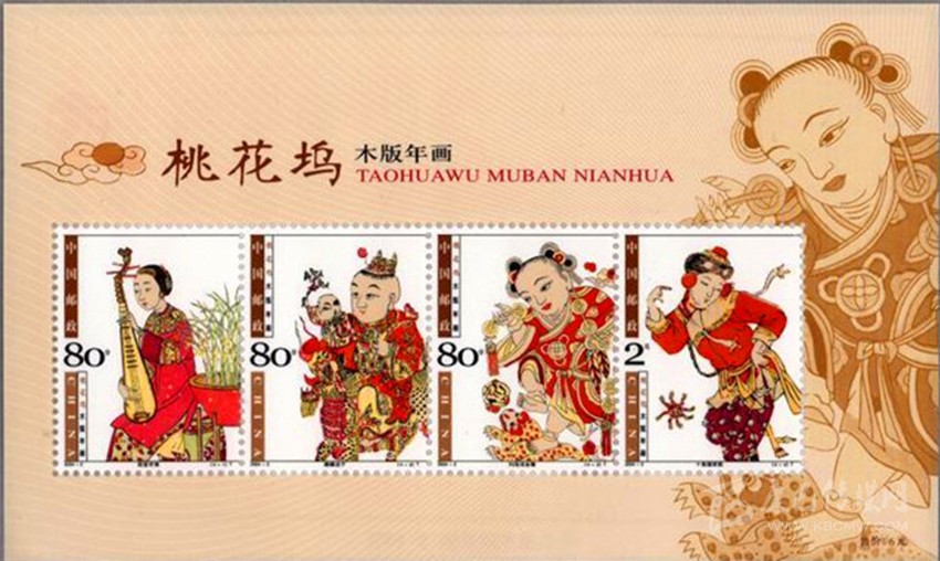 綻放中華民族文化遺產(chǎn)之美的年畫(huà)郵票。中國(guó)郵政從2003年開(kāi)始,連續(xù)九年發(fā)行了各地木版年畫(huà)系列郵票九套共36枚,每套均為4枚,為新春佳節(jié)帶來(lái)吉祥喜慶氣氛。分別是:2003年發(fā)行的《楊柳青木版年畫(huà)》、2004年發(fā)行的《桃花塢木版年畫(huà)》、2005年發(fā)行的《楊家埠木版年畫(huà)》、2006年發(fā)行的《武強(qiáng)木版年畫(huà)》2007年發(fā)行的《綿竹木版年畫(huà)》、2008年發(fā)行的《朱仙鎮(zhèn)木版年畫(huà)》、2009年發(fā)行的《漳州木版年畫(huà)》、2010年發(fā)行的《梁平木版年畫(huà)》和2011年發(fā)行的《鳳翔木版年畫(huà)》。這些不同地域、不同風(fēng)格、不同色彩的年畫(huà),展示了我國(guó)非物質(zhì)文化遺產(chǎn)的根深葉茂、博大精深。九套郵票,各有千秋,異彩紛呈,體現(xiàn)了不同地域鮮明的文化特色,方寸之間綻放出中華民族文化遺產(chǎn)的美麗。