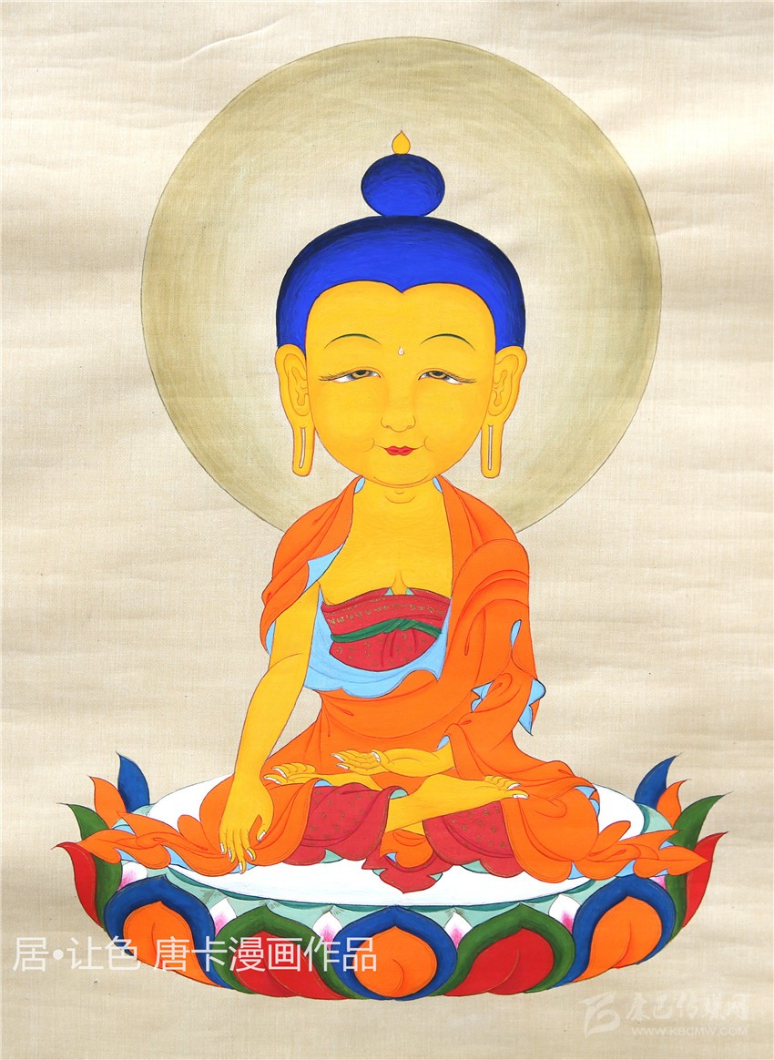 唐卡是藏族最具代表性的藝術(shù)門類之一,在其千年的傳承歷史中吸收融合了印度、尼泊爾等多地的藝術(shù)元素,發(fā)展成為極具雪域特色和審美價(jià)值的藝術(shù)形式。傳統(tǒng)唐卡缺乏立體感和形象感,畫面層次模糊,人物形象單薄,不利于民族文化傳承,“對(duì)于不懂畫的人來說,這種畫法他們看不懂?!被诖?,居·讓色對(duì)唐卡繪畫技法作了改良,結(jié)合現(xiàn)代漫畫,以寫實(shí)的手法,實(shí)現(xiàn)活態(tài)傳承、永續(xù)流傳目的。