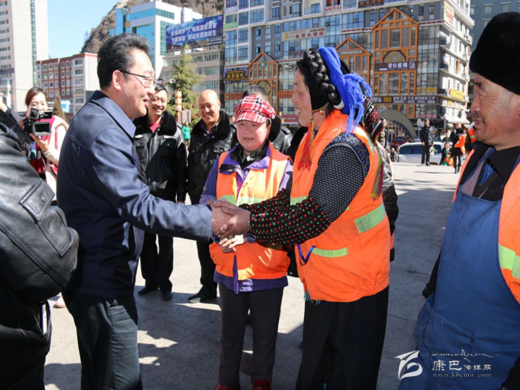 “辛苦了!祝您們新年快樂。”在康定情歌廣場,益西達(dá)瓦向市政管理人員和環(huán)衛(wèi)工人們送上了新年祝福,感謝他們?yōu)閯?chuàng)造整潔、優(yōu)美的城市環(huán)境作出的貢獻(xiàn)。益西達(dá)瓦說,近年來康定在城市建設(shè)和管理上取得了很大的成績,2014年躋身中國最美麗縣城第27名,這個成績的取得離不開廣大市政管理人員和環(huán)衛(wèi)工作者默默無聞地奉獻(xiàn),感謝你們?yōu)榍鍧嵆鞘懈冻龅男燎趧趧印?br />