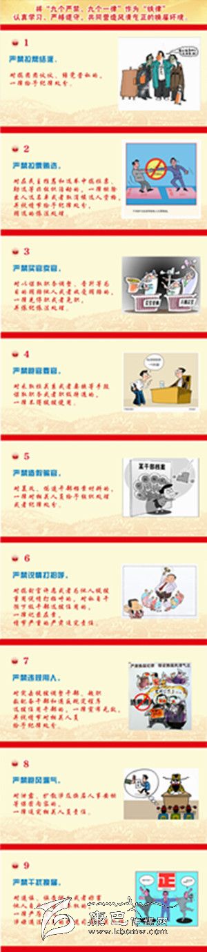 1.嚴禁拉幫結(jié)派,對搞團團伙伙、結(jié)黨營私的,一律給予紀律處分。