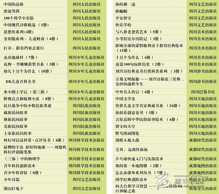 本網訊(張良娟)在“六一”兒童節(jié)來臨之際,省委宣傳部和省精神文明辦等聯(lián)合向全省青少年推薦《中國的品格》《激流男孩》等50種川版優(yōu)秀出版物。