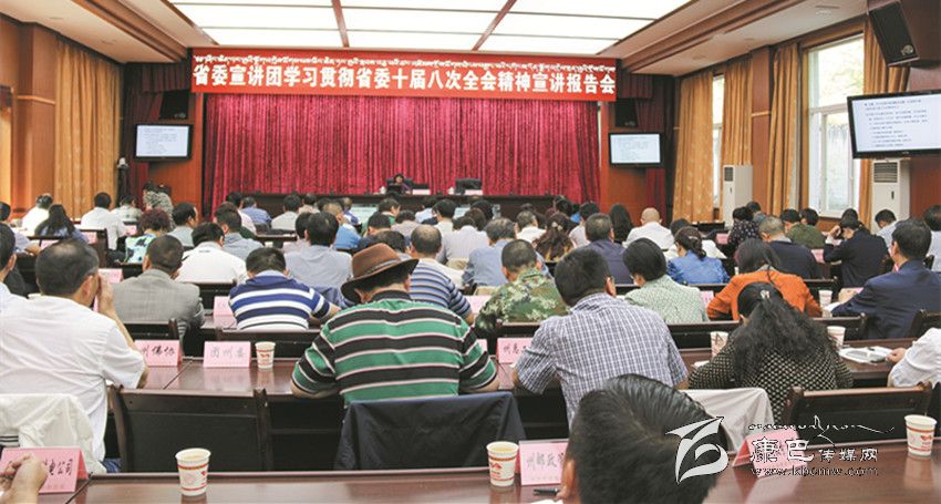 本網(wǎng)訊(記者 鄧安華 文/圖)為深入系統(tǒng)地學(xué)習(xí)貫徹省委十屆八次全會(huì)精神,按照省委統(tǒng)一部署,8月22日,省委宣講團(tuán)成員、省社科院經(jīng)濟(jì)研究所副所長(zhǎng)(研究員)、省委十屆八次全會(huì)文件起草組成員沈茂英到我州作宣講報(bào)告,專(zhuān)題宣講省委十屆八次全會(huì)精神。受州委委托,州人大常委會(huì)主任李康主持報(bào)告會(huì)。