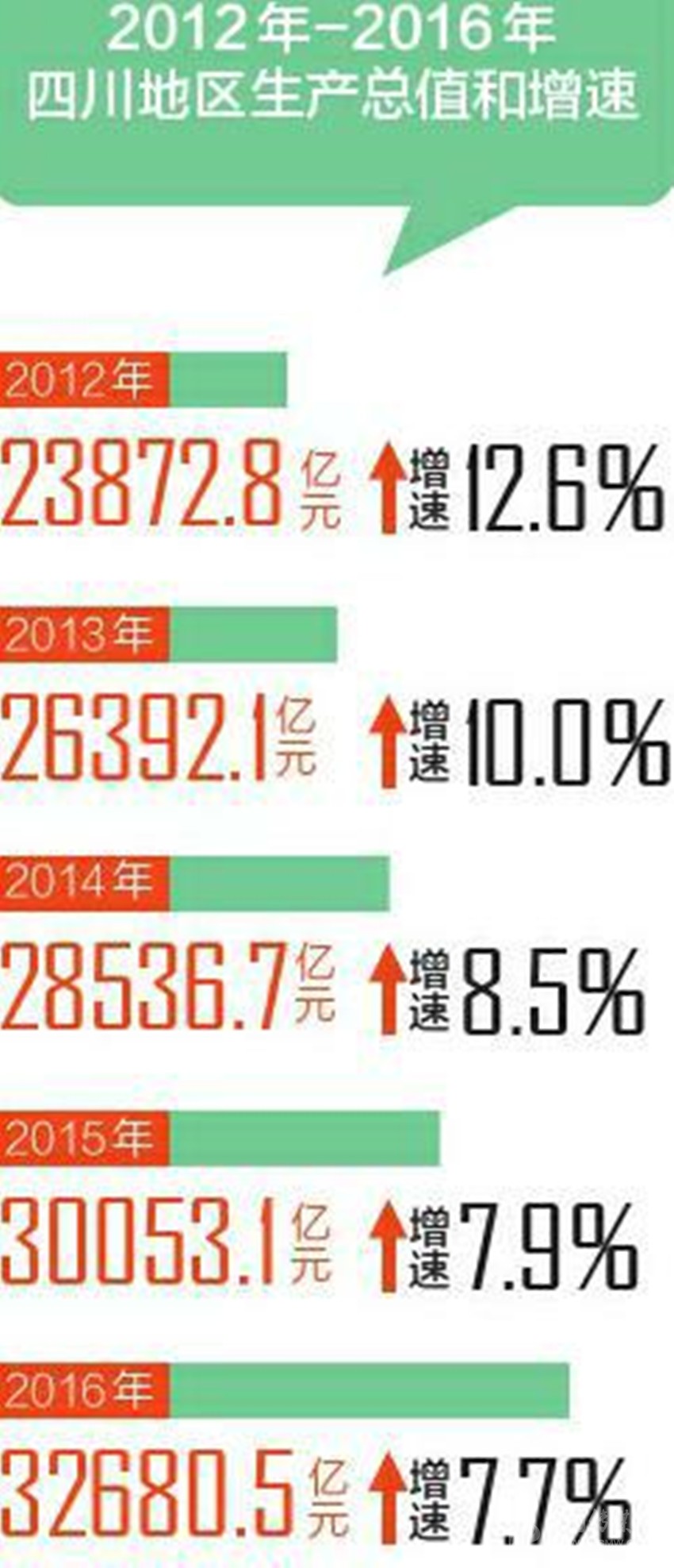 2012年,全省GDP過千億的市州只有9個,到2016年已經(jīng)達(dá)到15個。除成都外,14個市州都在1000億元到2000億元之間,相鄰兩個市州的平均差距只有60億元左右,最大差距不到100億元,最小差距只有1億多元。
