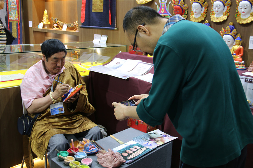記者又分別走訪幾家參展商,鄉(xiāng)城縣文化旅游局羅絨扎姆說,我們的十二生肖(唐卡)已經(jīng)賣出六幅多了,咨詢的也接二連三,有的訂了單,還有的有意向。接著,部分商家道出心理話。新龍藥泥面具傳承人四龍降澤說, 11日就賣了1700多元;瀘定縣冰川水晶加工廠涂娟說,兩天銷售凈賺10000元;而藏藝通旅游文化有限公司行政助理格桑達(dá)美說,這兩天圍巾和小的掛件銷售量比較好,收入接近10000元,隨著周末的到來,人流量會(huì)逐步增加,相信到那時(shí)我們的銷量也會(huì)攀升。