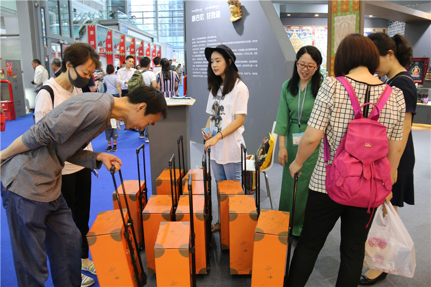 318線精品旅游線路圖、創(chuàng)意拉桿箱;原本一些靜態(tài)的物品被潮流的設(shè)計(jì)之后,在“藝?甘孜”展館門口屢屢賣到脫銷。此次文博會(huì),甘孜州全境文化產(chǎn)業(yè)發(fā)展公司順應(yīng)旅游市場推出了一系列“接地氣”的文化創(chuàng)意產(chǎn)品。通過傳統(tǒng)文化和日常生活的無縫銜接,旅游、文物在老百姓心中變得更加生動(dòng)有趣、接地氣。該公司運(yùn)營總監(jiān)梅小恩說:“由于多次參加布展,考慮到消費(fèi)者購物后,攜帶很不方便。于是前期公司就設(shè)計(jì)制成這款具有康巴文化的文創(chuàng)產(chǎn)品IP形象,雖然是一款紙箱,但款式都以真皮箱相仿,設(shè)計(jì)理念是康巴漢子騎著摩托車奔馳在318線上,這一理念得到了市民認(rèn)同,前來購買的人很多,消量特別好。下步將立馬上線,推出皮箱系列,到今天為止訂單都很多了?!?/p>