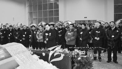 隨后遺體告別儀式開始,前來送別的人們神情肅穆地排成長隊(duì),緩步走到畢世祥遺體前肅立默哀,鞠躬送別畢世祥同志。一株、兩株、三株……菊花在如雨的眼眸里輝映;一朵、兩朵、三朵……絹花在如水的淚花中閃爍;一步、兩步、三步……步伐在如泣的樂曲中緩行。