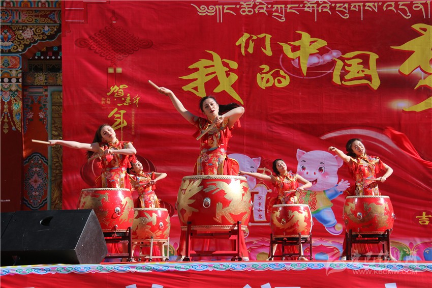 活動(dòng)中,來(lái)自瀘定的20多名少年也熱情表演了舞蹈《鼓動(dòng)新春》。小朋友們穿著火紅的盛裝,挎著精美的腰鼓,在舞臺(tái)上奔跑跳躍,熱情敲打,不僅敲出了喜悅,跳出了吉祥,也展示了甘孜人民生活越來(lái)越美好、精神越來(lái)越振奮的良好精神面貌。