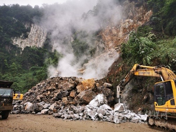周宗海說,為搶通中斷路段,珙縣自然資源和規(guī)劃局于18日中午一點(diǎn)開始,組織機(jī)具10余臺 ,人員20余人進(jìn)行連續(xù)加班作業(yè),對垮塌巖體進(jìn)行爆破、清運(yùn),清理碎石約15000噸,于19日晚上十點(diǎn)搶通了該路段。