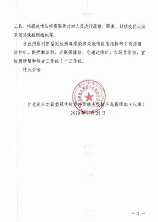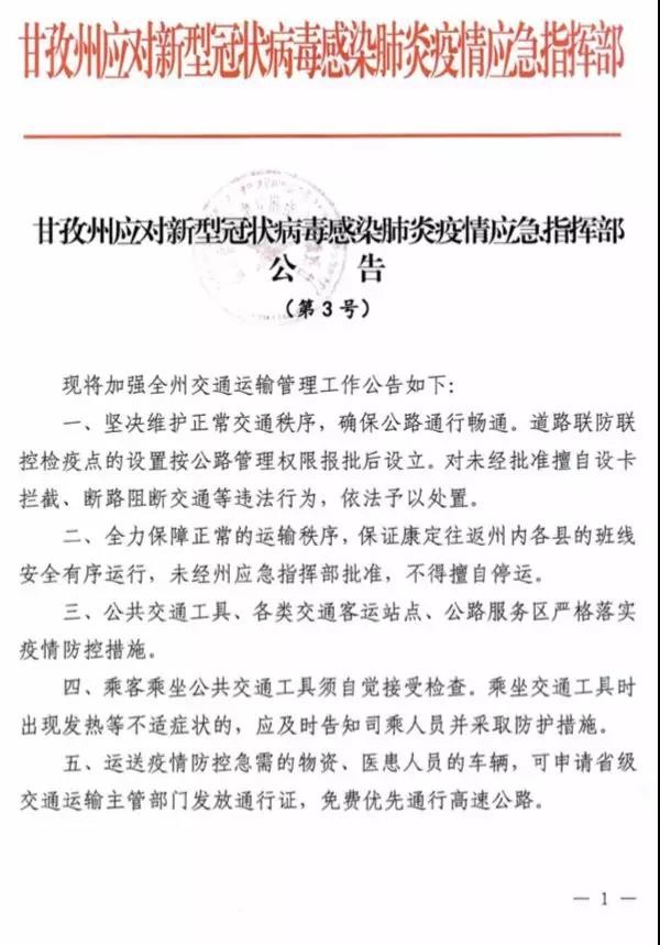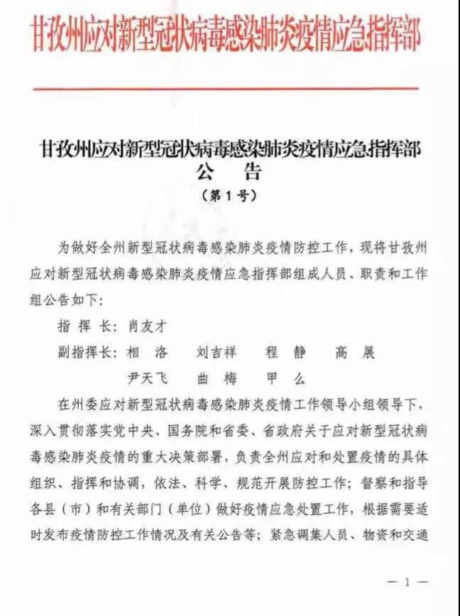 重磅!甘孜州應(yīng)對新型冠狀病毒感染肺炎疫情應(yīng)急指揮部連發(fā)第1、2、3號公告,做出這些要求