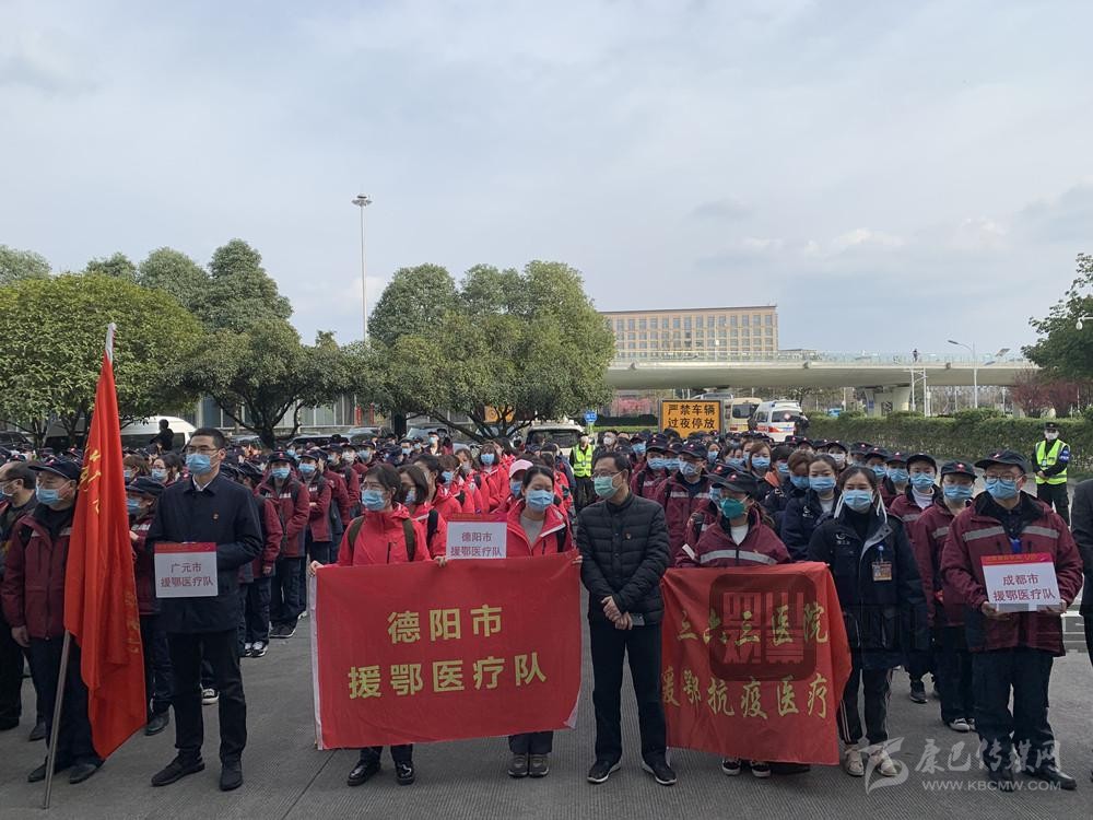 2月9日下午4點,四川省第六批援助湖北醫(yī)療隊300名隊員在成都雙流機場集結(jié)完畢,現(xiàn)場舉行了出征儀式。