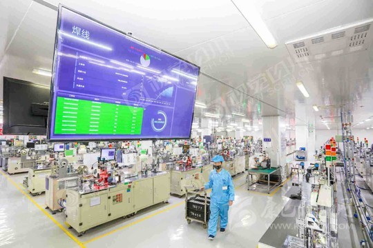 遂寧市經開區(qū)藍彩電子智能信息化車間,工人正在生產線開足馬力加緊生產。