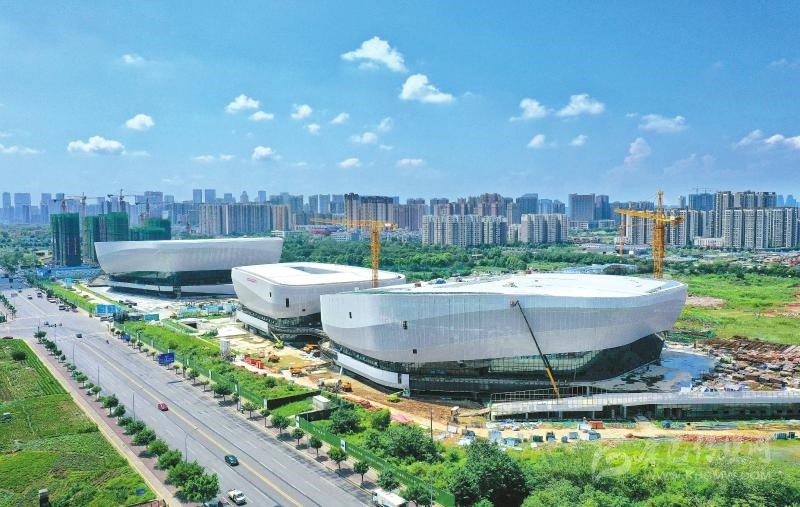 8月3日,鳥瞰成都高新區(qū)體育中心。三顆白色明珠組成的成都高新區(qū)體育中心總建筑面積達20.16萬平方米,是可容納12993位觀眾的室內綜合甲級體育館。