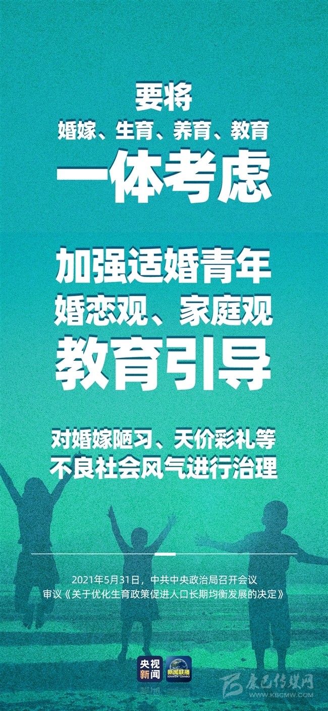 中共中央政治局5月31日召開會(huì)議,聽取“十四五”時(shí)期積極應(yīng)對(duì)人口老齡化重大政策舉措?yún)R報(bào),審議《關(guān)于優(yōu)化生育政策促進(jìn)人口長(zhǎng)期均衡發(fā)展的決定》。就積極應(yīng)對(duì)人口老齡化、調(diào)整生育政策等問(wèn)題,會(huì)議作出重磅部署。