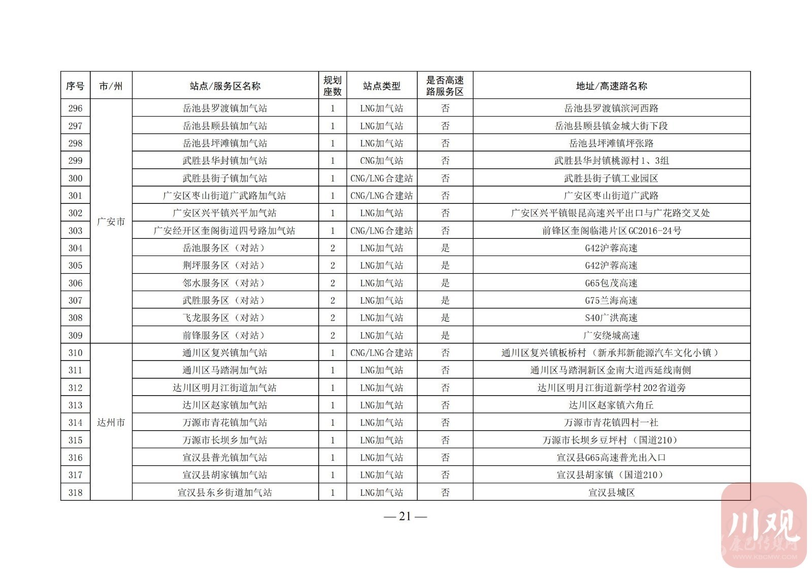 日前,四川省發(fā)展和改革委員會(huì)、四川省能源局印發(fā)《四川省天然氣汽車加氣站布局方案(2021-2025年)》(以下簡(jiǎn)稱《方案》)。《方案》提出到2025年,四川將規(guī)劃新建加氣站500座(含高速公路服務(wù)區(qū)141座),其中,CNG加氣站15座、LNG加氣站401座、L-CNG加氣站8座、CNG/LNG合建站76座。