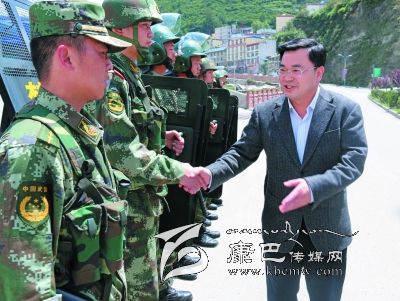 當(dāng)日下午3時許,318國道車水馬龍,川流不息。胡昌升來到公主橋交警治安崗?fù)?,實地檢查了周邊交通秩序維護(hù)和安保工作,并與正在執(zhí)行任務(wù)的交警和卡點上的武警官兵逐一握手。在詳細(xì)聽取了上勤時間、工作情況及針對車流量大的保通措施后,胡昌升對交管部門與武警部隊克服高溫天氣,密切配合共同做好周邊交通秩序維護(hù)和反恐維穩(wěn)工作表示充分肯定。