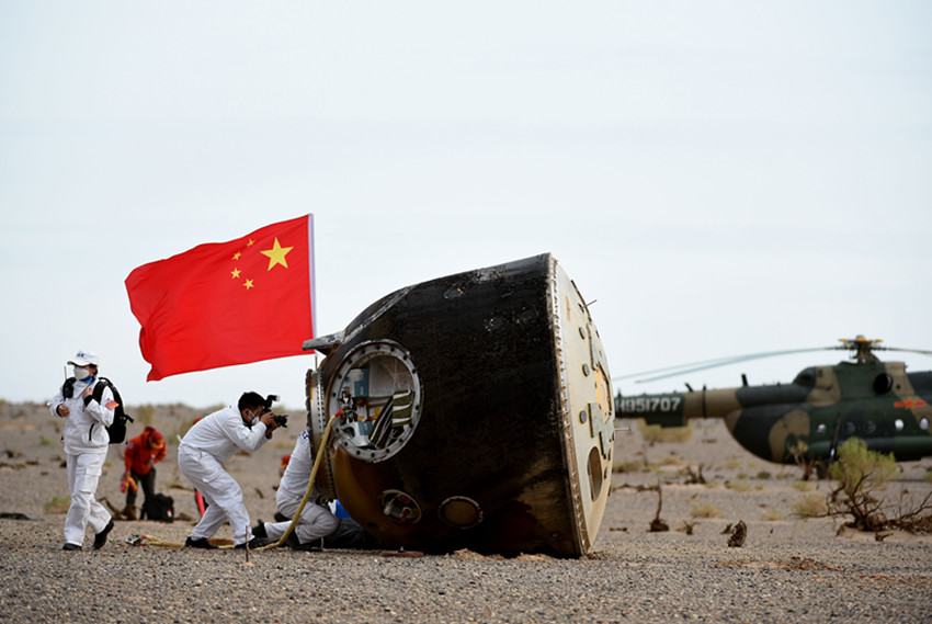 6月4日,神舟十五號載人飛船返回艙在東風(fēng)著陸場成功著陸。 新華社 發(fā)