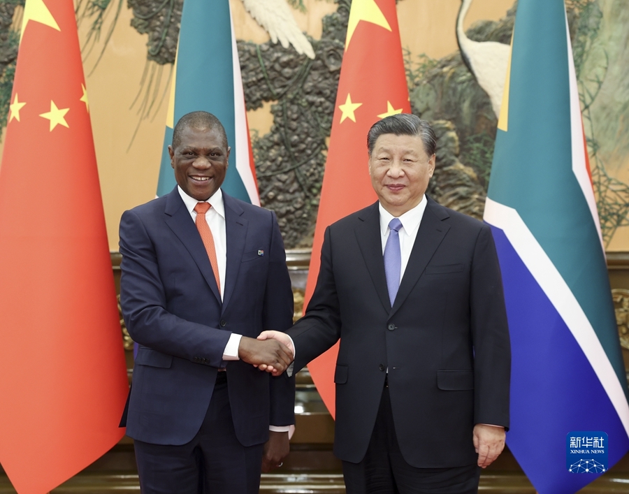 習(xí)近平強(qiáng)調(diào),中方支持南非探索符合本國國情的現(xiàn)代化道路,愿同南非進(jìn)一步夯實(shí)政治互信基礎(chǔ),提升互利合作水平。中方愿同南非等非洲國家一道,落實(shí)中國支持非洲工業(yè)化、農(nóng)業(yè)現(xiàn)代化、人才培養(yǎng)三項(xiàng)舉措以及高質(zhì)量共建“一帶一路”的八項(xiàng)行動(dòng),打造一批高標(biāo)準(zhǔn)、惠民生、可持續(xù)的合作項(xiàng)目,提升中非合作的戰(zhàn)略性和可持續(xù)性,推動(dòng)構(gòu)建高水平中非命運(yùn)共同體。雙方應(yīng)繼續(xù)密切在金磚國家機(jī)制內(nèi)合作,加強(qiáng)發(fā)展中國家團(tuán)結(jié)合作,推動(dòng)全球治理體系朝著有利于發(fā)展中國家的方向發(fā)展。