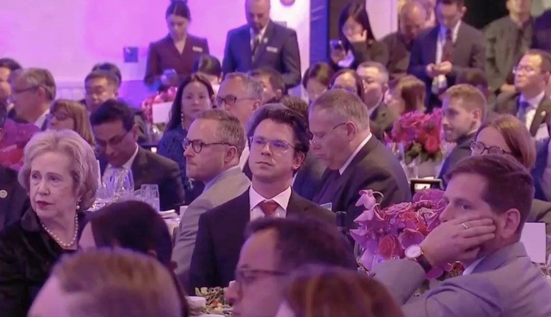 △當(dāng)?shù)貢r(shí)間11月15日晚,習(xí)近平主席在美國友好團(tuán)體聯(lián)合歡迎宴會上發(fā)表演講。圖為參加宴會的人士認(rèn)真聆聽演講。