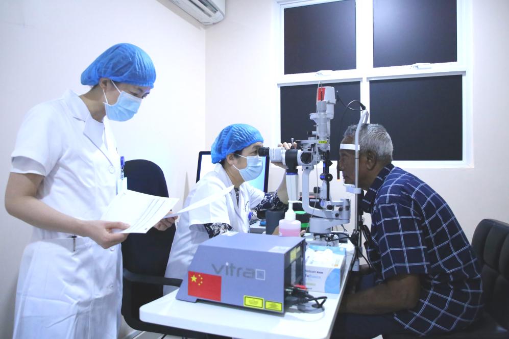 ??69歲的艾哈邁德·卡洛是中國(guó)醫(yī)療隊(duì)“光明行”活動(dòng)的獲益者。兩個(gè)兒子曾帶著患有眼疾多年的老人輾轉(zhuǎn)多家醫(yī)院,均因手術(shù)難度大而無(wú)法得到有效治療。2023年,中國(guó)醫(yī)療隊(duì)醫(yī)生經(jīng)過(guò)充分評(píng)估后,給老人成功實(shí)施了手術(shù)。術(shù)后揭開(kāi)眼罩時(shí),老人家激動(dòng)地說(shuō):“醫(yī)生,我可以看到你的胸牌了,謝謝你!”老人的兒子也在社交媒體發(fā)帖說(shuō):“真誠(chéng)感謝中國(guó)醫(yī)生?!背酥尾?,中方還著力培訓(xùn)當(dāng)?shù)蒯t(yī)務(wù)人員,力爭(zhēng)為當(dāng)?shù)卮蛟煲恢А皫Р蛔摺钡难劭茖<谊?duì)伍。