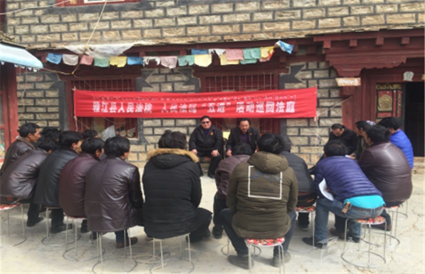 由于布孜村交通落后,給村民的出行帶來(lái)了極大的不便,也制約著村里的經(jīng)濟(jì)發(fā)展,為了有更好的生活條件,大部分村民選擇搬遷到離村不遠(yuǎn)的鄰縣理塘縣生活。在長(zhǎng)期的生活接觸中,兩地村民常為一些小事“扯皮”,有了糾紛也不知道如何用法律來(lái)解決。為解決布孜村村民法律意識(shí)淡薄的問(wèn)題,雅江縣人民法院專門組建宣講隊(duì)深入基層,向已搬遷,但戶籍所在地仍屬雅江縣的布孜村村民分析案情、講解法律知識(shí)。
