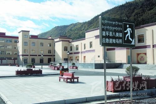 “這邊是避難廣場,設(shè)置有救災(zāi)物資儲備倉庫等;廣場邊還有露天水儲備設(shè)備和供水設(shè)施,一旦遇到緊急情況,這些設(shè)施可以馬上啟用。避難廣場外是新建成的濱河路,這一帶曾經(jīng)是爛泥灘。”因為災(zāi)后重建,陳慶在道孚八美鎮(zhèn)一住就是3年,在介紹起八美鎮(zhèn)的災(zāi)后重建成果時,他顯得有些自豪。