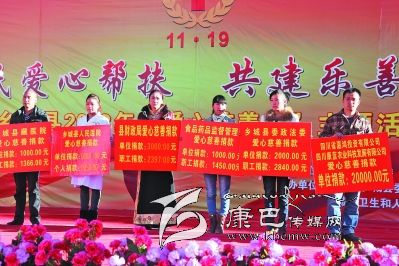 本網(wǎng)訊(何才華 文/圖)11月18日,鄉(xiāng)城縣愛(ài)心慈善募捐活動(dòng)在該縣香巴拉休閑廣場(chǎng)舉行,來(lái)自全縣的機(jī)關(guān)干部、宗教界代表、個(gè)體工商戶(hù)代表、建筑施工企業(yè)等各界人士近2000人為需要救助者獻(xiàn)出自己的一份愛(ài)心。活動(dòng)現(xiàn)場(chǎng)募捐資金532998元。