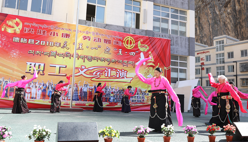 日前,由德格縣委、縣政府主辦,縣委宣傳部、縣群團(tuán)黨支部、縣文旅廣新局承辦的2018年慶“五一”迎“五四”職工文藝匯演活動在該縣中學(xué)舉行,來自全縣各行業(yè)勞模代表、青年代表、各級各部門干部職工、縣中學(xué)學(xué)生和教職員工2000余人觀看了演出。