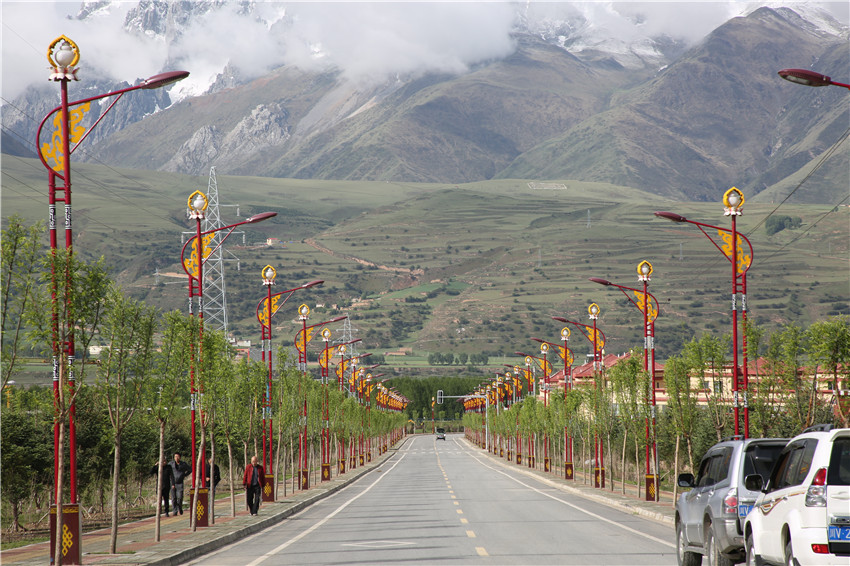 甘孜縣城街道綠樹(shù)成行。