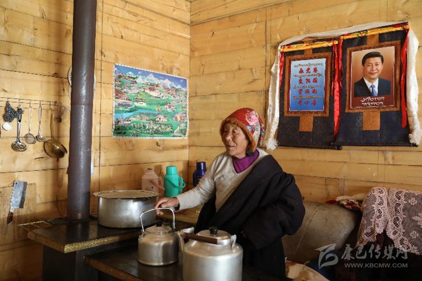 “我是村上第一個掛習(xí)主席唐卡畫像的脫貧戶!這幅黑白唐卡是我入住新房當(dāng)天掛的;幾天后,畫師又送我一幅彩色的,于是我就把這兩幅唐卡并排掛在客廳里。如今,全村家家戶戶都在客廳里掛上了習(xí)主席彩色唐卡。要是沒有習(xí)主席提出實施精準(zhǔn)扶貧,恐怕我們現(xiàn)在還住在山上受窮!”11月28日上午,當(dāng)筆者來到距德格縣城37公里的龔埡鄉(xiāng)雨托村采訪時,77歲的建檔立卡貧困戶呷瑪西繞指著習(xí)主席唐卡畫像激動地說。