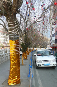 本網(wǎng)訊(記者 周華) 攝在馬年春節(jié)即將來臨之際,一批喜慶的新年裝飾亮相康定街頭,為節(jié)日的康定城增添了幾分喜氣。據(jù)康定縣市政管理局有關(guān)人士介紹,每年春節(jié),康定都要采取措施營造節(jié)日氛圍。今年的節(jié)日氛圍營造本著節(jié)儉、喜慶、熱烈的原則,在色調(diào)上突出傳統(tǒng)的紅色,融入了福、春、馬年生肖等元素,既有傳統(tǒng)的特點,又有民族特色。據(jù)了解,這些節(jié)日裝飾主要分布在城市街區(qū)、廣場及繁華地段。在有城市行道樹的街道,則采用裝飾與燈光結(jié)合的方式,突出城市的動感,使夜晚的康定城更加浪漫而富有生機。