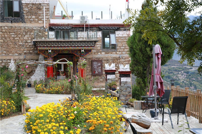 劉國芳告訴記者,花筑田園酒店的誕生,源于她的兒子和廣東東莞幾名游客的一段佳話,兒子安俊杰在跑成都到亞丁包車業(yè)務(wù)的時候,認(rèn)識了包車到亞丁的東莞游客趙雯、常妹、千麗、雙燕和成都的峰哥,一路上,開朗的安俊杰博得了客人的信任和好感。安俊杰邀請她們到甲居藏寨作客。幾位客人到甲居考察后,立即表示愿意投資在聶呷鄉(xiāng)開辦鄉(xiāng)村酒店。劉國芳請示縣鄉(xiāng)領(lǐng)導(dǎo)同意,決定將自己的自留地拿出來合資開辦酒店。5位客人立即出資10萬元用于整修道路,隨后出資100萬元,于2016年按照鄉(xiāng)村酒店的標(biāo)準(zhǔn)開始修建花筑田園酒店。酒店共有18個房間,建筑突出了丹巴嘉絨風(fēng)格,以玫瑰、菊花、薰衣草等花卉為主,集觀賞、休閑、康養(yǎng)為一體,增強了游客的體驗度和舒適感。2018年5月酒店開門迎客,到今年10月已盈利50多萬元。