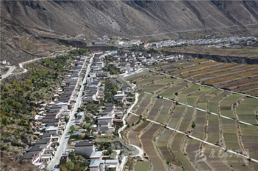 作為處于高山峽谷間的得榮縣鄉(xiāng)村,村民大多生活在懸崖峭壁上,或地質(zhì)災(zāi)害嚴(yán)重的地區(qū),生存條件極差,為了徹底斬除窮根,縣委、縣政府把開(kāi)發(fā)的目光投向了地勢(shì)相對(duì)平坦的因都?jí)巍?1月10日,記者再訪因都?jí)?。初冬的因都?jí)侮?yáng)光燦爛,溫暖如春。一棟棟民居、一層層梯田橫臥在青山綠水間,蔚為壯觀。農(nóng)閑季節(jié),村民們愜意地坐在自家庭院的亭子里,喝著酥油茶、品嘗著藏橘、梨子、蘋果和核桃。村道兩旁的藏橘碩果滿枝頭,寬敞的街道、靚麗的民居,一幅壯美的富春山居圖在金沙江畔徐徐展開(kāi)。