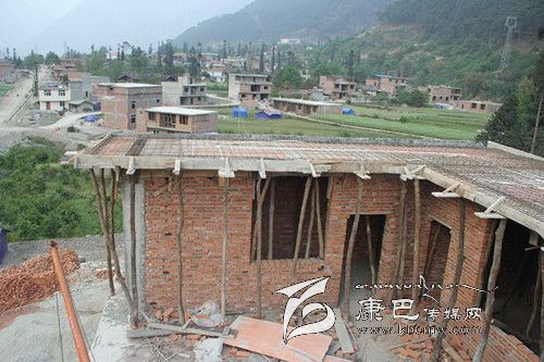 村民趙朝清的重建房在全村中屬開工較早的一批。他家的重建房屬磚混結(jié)構(gòu),整個房屋面積近200平方米,分上下兩層,下層有兩個門面,上層有七個房間,目前正在進行封頂工作。“這房是我和妹妹趙朝輝聯(lián)合修建的,國家共補貼了5.2萬元,自己投入了8萬余元。”趙朝清介紹說,由于經(jīng)濟困難,雖然借了近5萬多元的債,但縣重建辦正在為他們辦理貼息貸款手續(xù),等房子修完了后,準(zhǔn)備搞旅游接待,農(nóng)閑時再外出務(wù)工。對災(zāi)后重建未來發(fā)展,趙朝清充滿信心,謀劃調(diào)整種植結(jié)構(gòu),準(zhǔn)備在自家的幾畝地里種上辣椒、番茄等蔬菜,并套種大櫻桃,擴大優(yōu)質(zhì)核桃種植面積,增加收入。