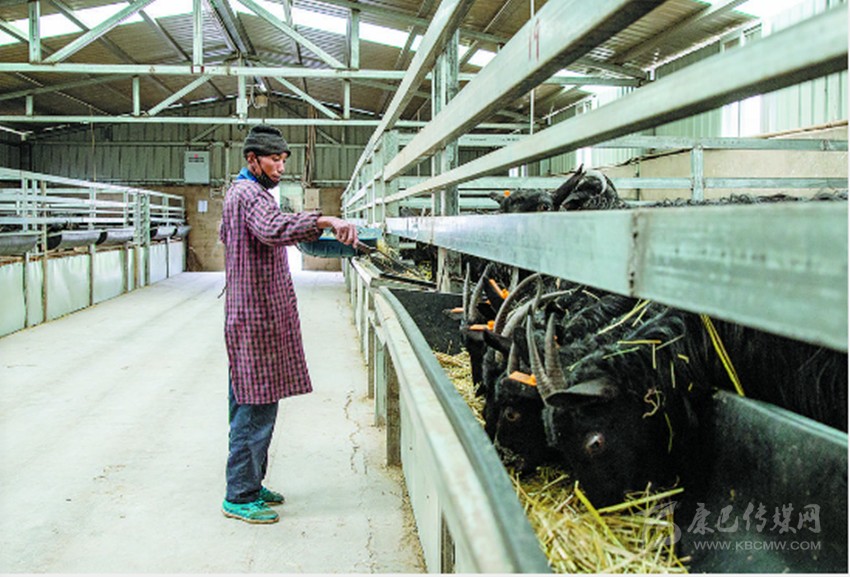 1月28日,白玉黑山羊燈龍保種繁育基地,村民向巴志瑪正在飼養(yǎng)黑山羊。養(yǎng)羊有工資、種草有收入,向巴志瑪說(shuō)自己是發(fā)了“羊財(cái)”。
