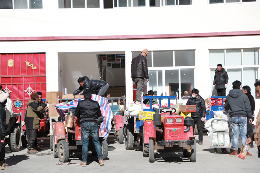 “今天我們村的17戶村民來領(lǐng)物資,臨近春節(jié)了,這些生活用品的發(fā)放真是太及時(shí)了,感謝黨和政府的關(guān)懷,我們的生活真是越來越好了。”熱加鄉(xiāng)拉巴村村民昂布開心地說。