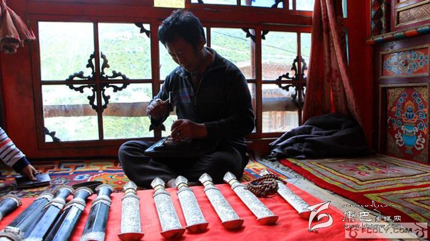 還沒(méi)走進(jìn)白玉縣河坡鄉(xiāng)根秋丹貞家,已傳來(lái)叮叮當(dāng)當(dāng)?shù)那么蚵暋?ldquo;我們家祖祖輩輩都從事藏族手工技藝,從以前的兵器到現(xiàn)在的裝飾品等,都是我們純手工制造出來(lái)的。”根秋丹貞是“白玉河坡藏族手工技藝”代表性傳承人,每年全國(guó)跑訂單,如今已接到了2016年,價(jià)值100多萬(wàn)元。