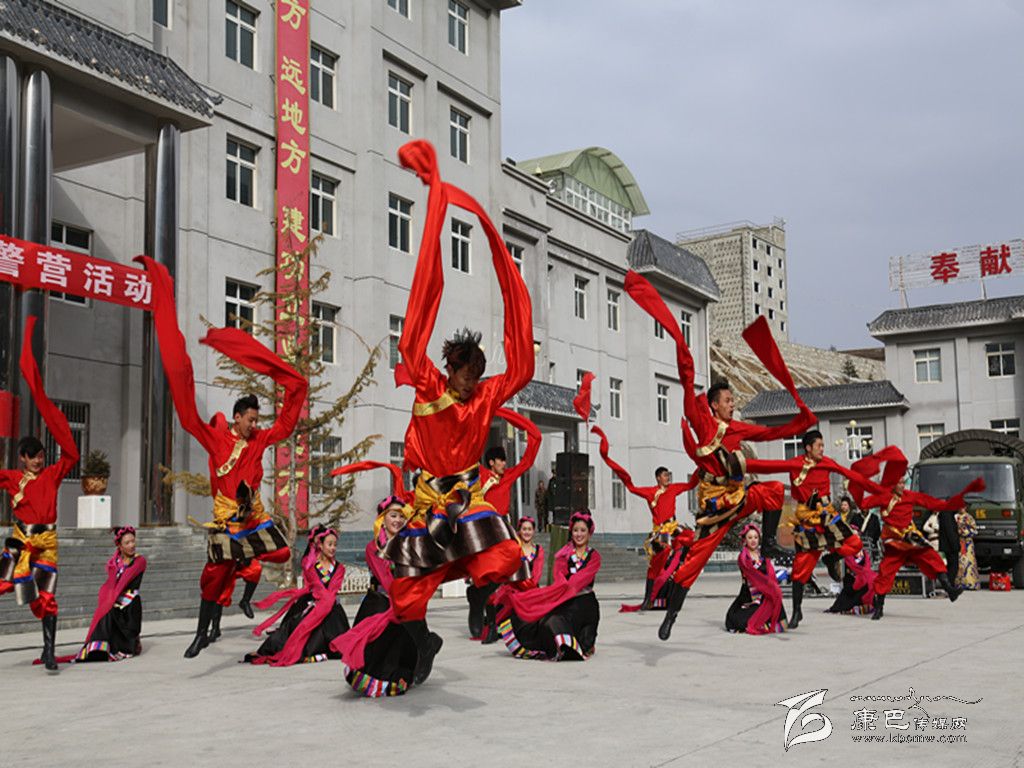 演出活動(dòng)在充滿藏族民族風(fēng)情的男女群舞《吉祥頌》中拉開帷幕,節(jié)目一開始,演員們激昂的熱情、優(yōu)美的舞姿給觀眾們帶來了美的享受,女子獨(dú)唱《納西情歌》《套馬桿》、男生獨(dú)唱《吉祥謠》、女子群舞《情灑康巴》、男子群舞《青春踢踏》、女子快板《甘孜兒女心向黨》等精彩節(jié)目相繼登場(chǎng),將演出活動(dòng)推向一個(gè)又一個(gè)高潮。特別是由支隊(duì)官兵表演的民族舞蹈《野人狂歡》、表演唱《當(dāng)兵就是帥》等精彩節(jié)目,贏得了觀眾們的陣陣喝彩。雖然天氣異常寒冷,天空還不時(shí)飄起了雪花,但演員們卻一直以飽滿的激情、嫻熟的技藝,為官兵們獻(xiàn)上了一個(gè)又一個(gè)精彩的節(jié)目。整場(chǎng)演出抒發(fā)了駐地群眾對(duì)人民子弟兵的深厚情誼和感激之情,表達(dá)了他們對(duì)人民子弟兵扎根高原、無私奉獻(xiàn)的欽佩之情,他們用自己的精彩表演,向人民子弟兵致以最親切的問候和最誠摯的敬意。