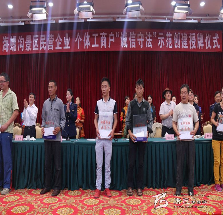 對(duì)公示無(wú)異議的178戶(hù)“誠(chéng)信守法”示范創(chuàng)建戶(hù)命名授牌,由州工商局、海螺溝管理局授予甘孜州海螺溝景區(qū)"誠(chéng)信守法示范戶(hù)",并頒發(fā)牌匾。 被授予“誠(chéng)信守法示范戶(hù)” 178戶(hù)商家莊嚴(yán)宣誓:自愿申報(bào)成為“誠(chéng)信守法”示范企業(yè)(個(gè)體工商戶(hù)),一定信守承諾、珍惜榮譽(yù),將“誠(chéng)信”作為立業(yè)、興業(yè)的基石和名片,崇尚法律、敬畏法律,依法經(jīng)營(yíng)。同時(shí),在“誠(chéng)信守法”示范創(chuàng)建承諾書(shū)上莊重地簽下自己的名字。