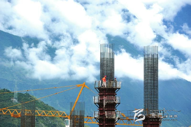 出了瀘定縣城,沿著318國道過了咱里大橋,就能夠看到半山腰上初具規(guī)模的塔基。