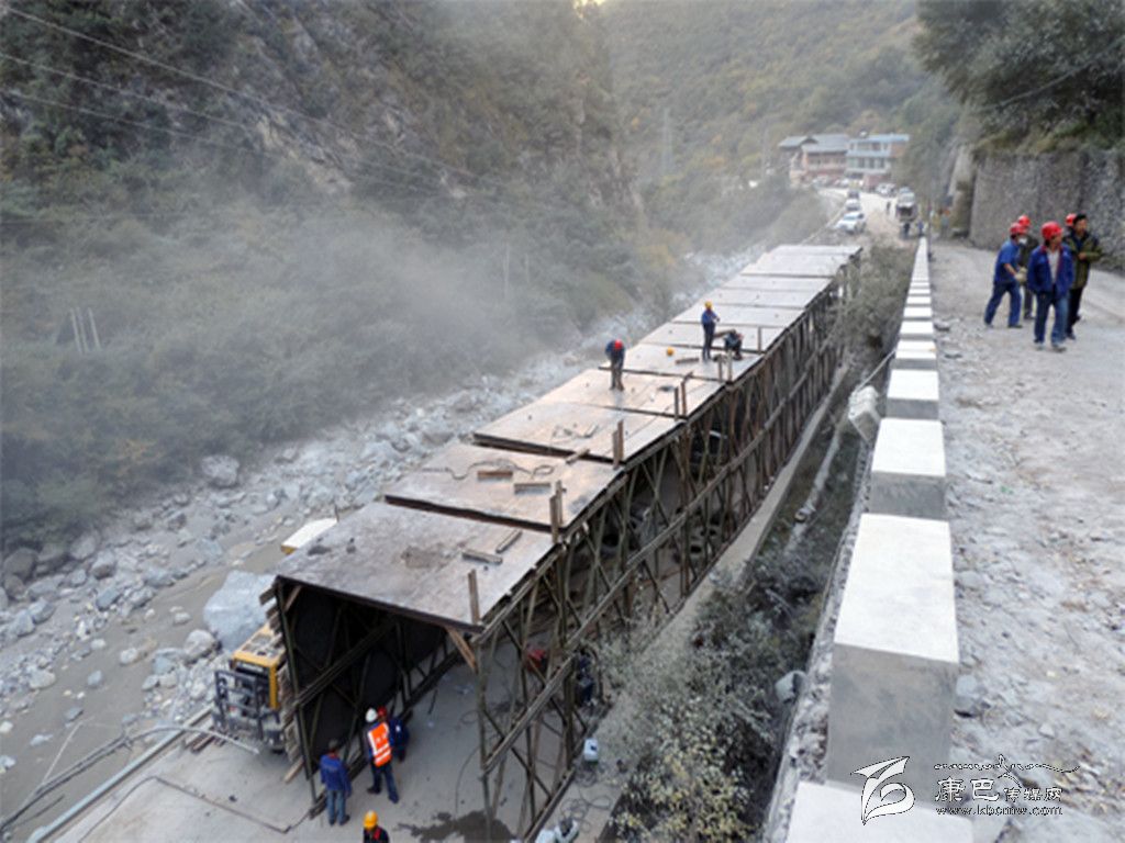 針對(duì)山體崩塌及道路受阻情況,甘孜水電公司與有關(guān)參建單位就隧道搶通、防護(hù)網(wǎng)安裝等多個(gè)防護(hù)搶通方案進(jìn)行了比選和論證,確定了架設(shè)鋼結(jié)構(gòu)棚洞應(yīng)急保通方案,并用8天時(shí)間高效快捷地完成了78米長(zhǎng)的一期防護(hù)棚洞建設(shè),使湯壩土料場(chǎng)公路具備臨時(shí)通行條件,緩解了山體崩塌給當(dāng)?shù)厝罕娚a(chǎn)生活造成的影響,切實(shí)履行了央企的社會(huì)責(zé)任,有效降低了山體崩塌對(duì)長(zhǎng)河壩工程建設(shè)的進(jìn)度影響。